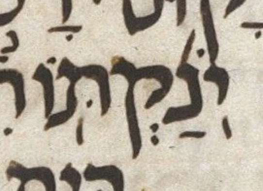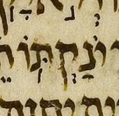 Above I have asserted that the consensus has געיה here, but this געיה, like most cases of געיה, is optional. Therefore, one could just as easily assert the consensus has no געיה. I have chosen the consensus to be as close as possible to the proposed transcription of μL. I did this in order to make the proposed transcription seem no weirder than it really is. In other words, it is better to frame this as a question of דחי versus געיה than as a question of דחי versus no mark at all. Note that neither μA nor μY has a געיה here. — U — M — μL (page 399A, col 2, line -4 (4 counting from bottom of column)):