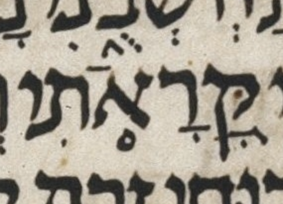 The dot is suspiciously brown rather than black. — BHQ notes that the דגש on the ק in μL disagrees with μA and μY. This is one of the three reiterations that is new in BHQ, i.e. not present in BHS. The other two are 6:21 and 18:4. — U — M — μL (page 402B, col 1, line 8):