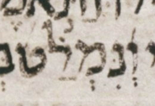 The dot in question is suspiciously smaller than nearby ones. — BHQ notes this possibility, whereas this is not noted in the other editions under consideration. It could be the editors of those other editions did not catch this, or it could be that they caught it but considered it to be too slight a possibility to note it. — U — M — μL (page 403B, col 2, line 4):