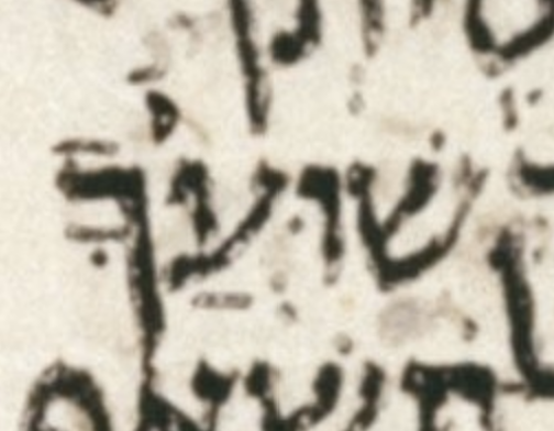 All but the southeast end of the דחי seems to have flaked off, but luckily left some faint trace behind. To charitably transcribe this word, we must not only transcribe this faint trace but also decline to transcribe the similarly faint blob (an erasure?) right next to it under the ש. — U — M — μL (page 407B, col 1, line 11):