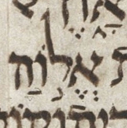 Perhaps a רביע is merged into the left end of the (untranscribed) רפה. — U — M — μL 399A col. 2 line 20