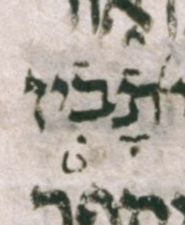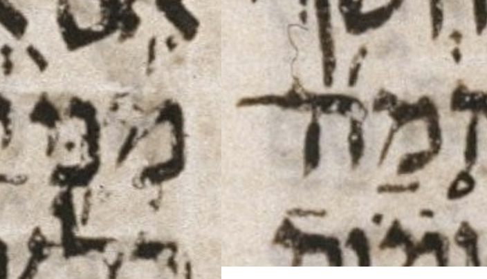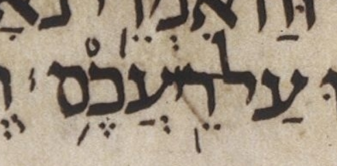 Above I have asserted that the consensus has געיה here, but this געיה, like most cases of געיה, is optional. Therefore, one could just as easily assert the consensus has no געיה. I have chosen the consensus to be as close as possible to the proposed transcription of μL. I did this in order to make the proposed transcription seem no weirder than it really is. In other words, it is better to frame this as a question of דחי vs געיה than as a question of דחי vs no mark at all. — U — M — μL 399A col. 2 line -4 (4 counting from bottom of column)