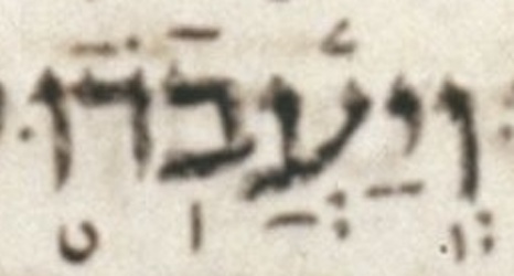 The distinction between the מרכא accent, the געיה mark, and the טרחא accent is a vexing problem. Perhaps in some manuscripts, the angle of these marks can help make this distinction, but μL is not such a manuscript. We can, as usual, lean on consensus for help, although consensus based on manuscript evidence is hard to determine in these cases due to this same problem of angle-reliability mentioned above. Notably, I suspect that μA is more reliable than μL in this regard, but I am not sure. So, in these cases, in determining consensus, we may have to rely more than usual on the evidence of printed editions. We may also have to rely more than usual on context like the grammar of cantillation, to determine which of these marks is most likely in a given situation. Aside: the מקף is very faint. — U — M — μL 407B col. 2 line 24